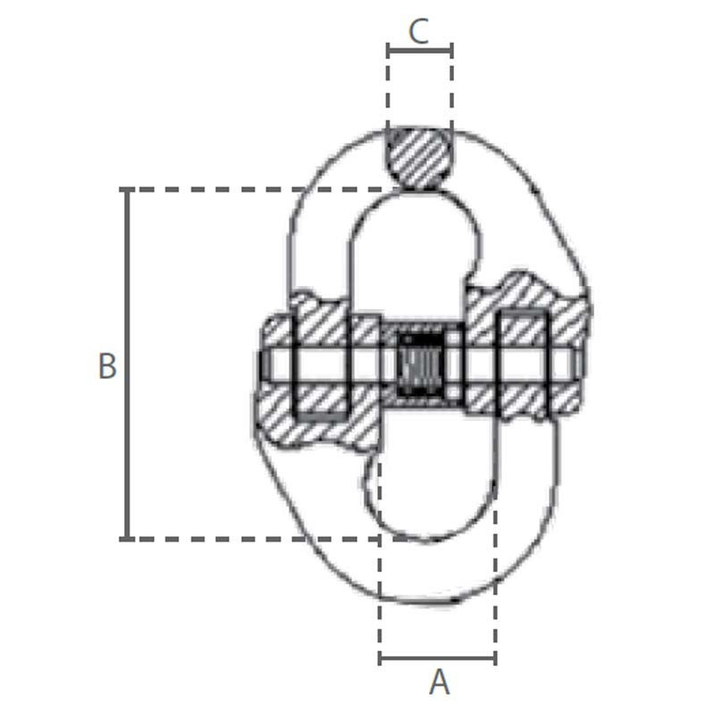 Ø chain(mm) | WLL (Kg) | Weight(Kg) | A | B | C |