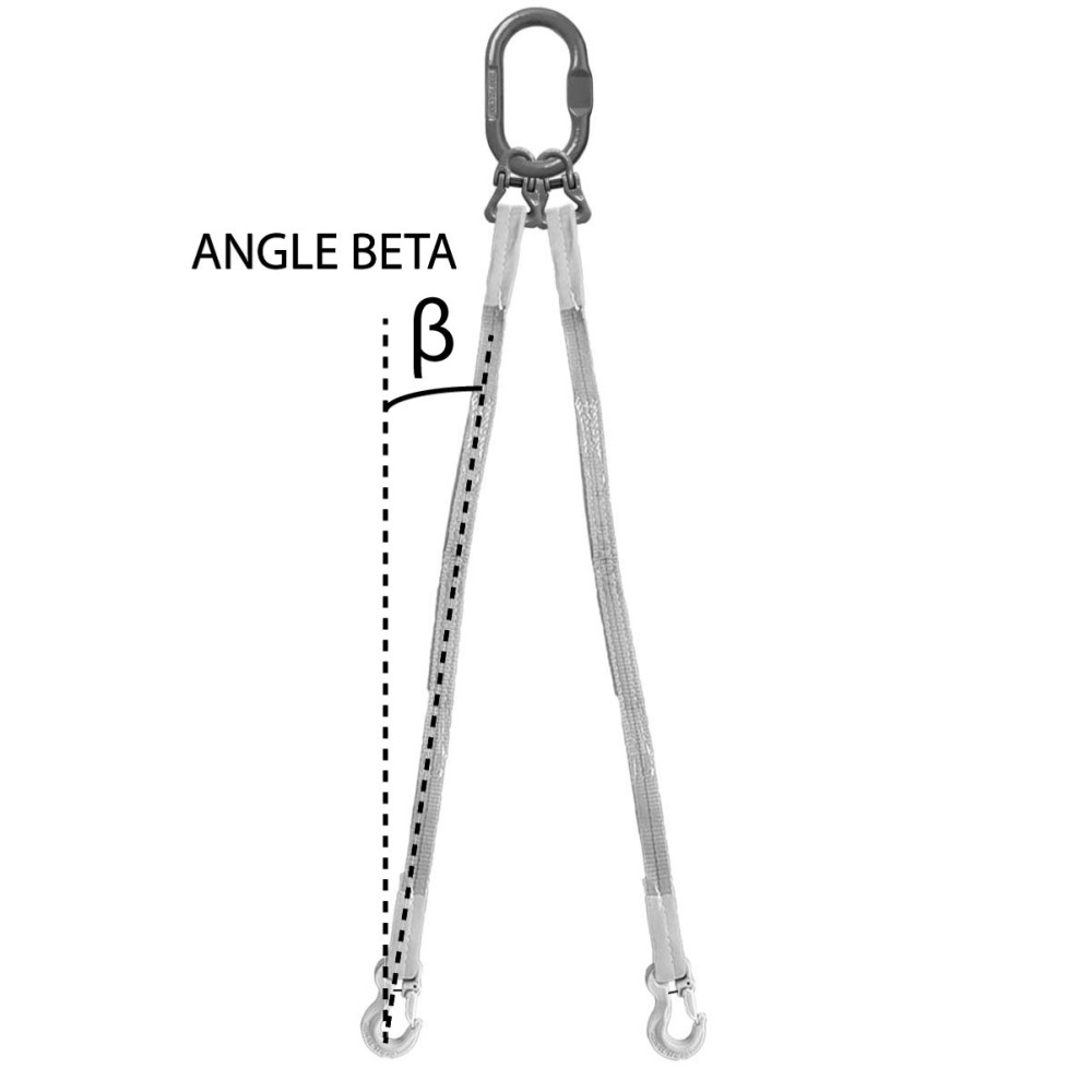 Working angle beta: 0° to 45° maximum. This is the angle formed between the vertical line and the sling