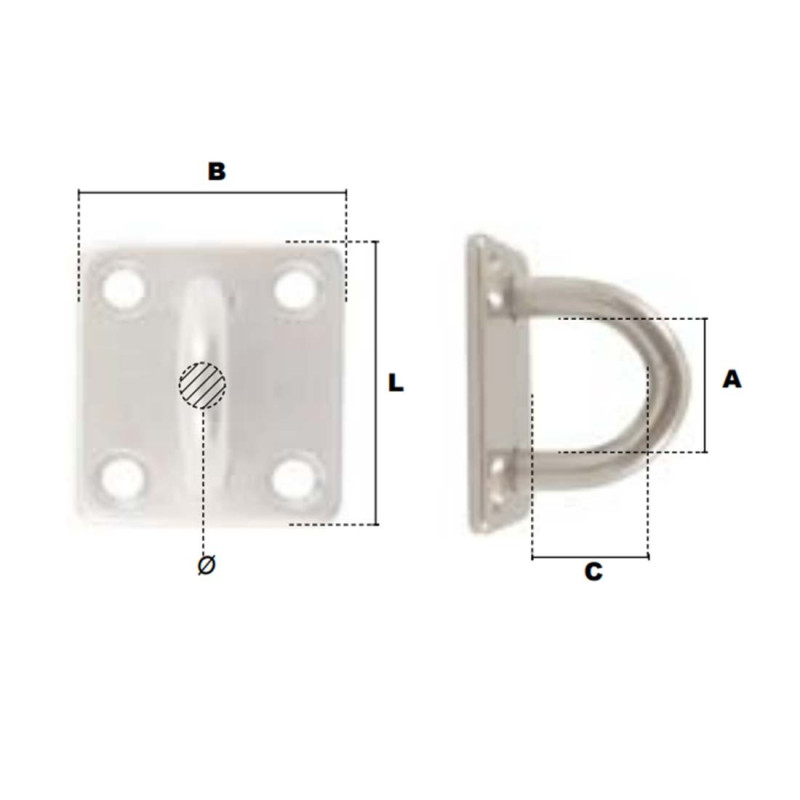 - 2 pontets sur platines inox 304 | dimensions (mm) Ø5 A:16 B:30 C:14 L:35